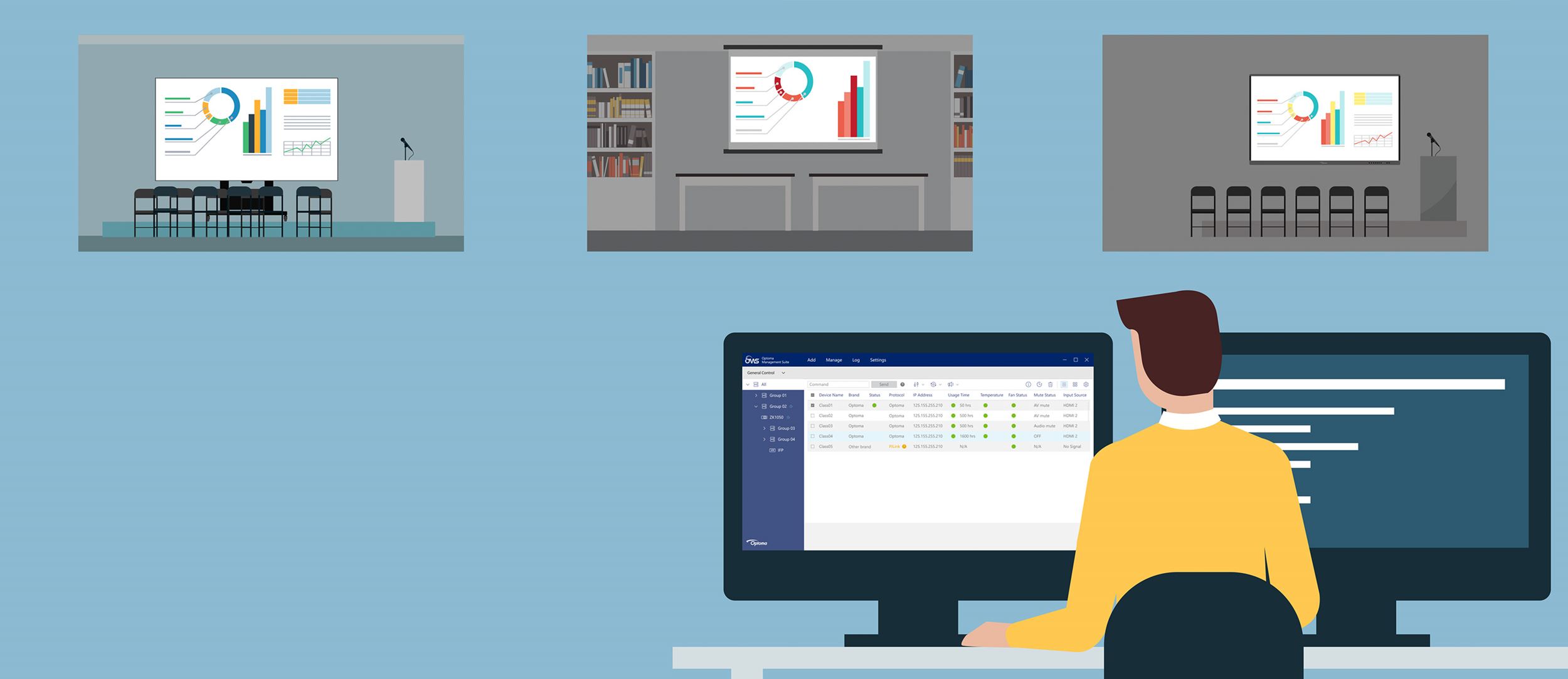 Remotely manage your IFPDs, projectors, LED displays and more. Set alerts, schedule tasks or settings and broadcast announcements. Optoma’s Management Suite (OMS)™ solution is perfect for easy management and control from any location for all your compatible Optoma devices