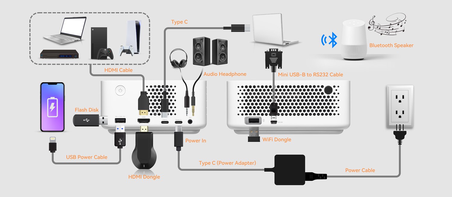 With a regular throw, you can project an impressive 100” image from 2.7 metre away. This allows you to have big screen and good picture quality and to place the projector on the side table suits .