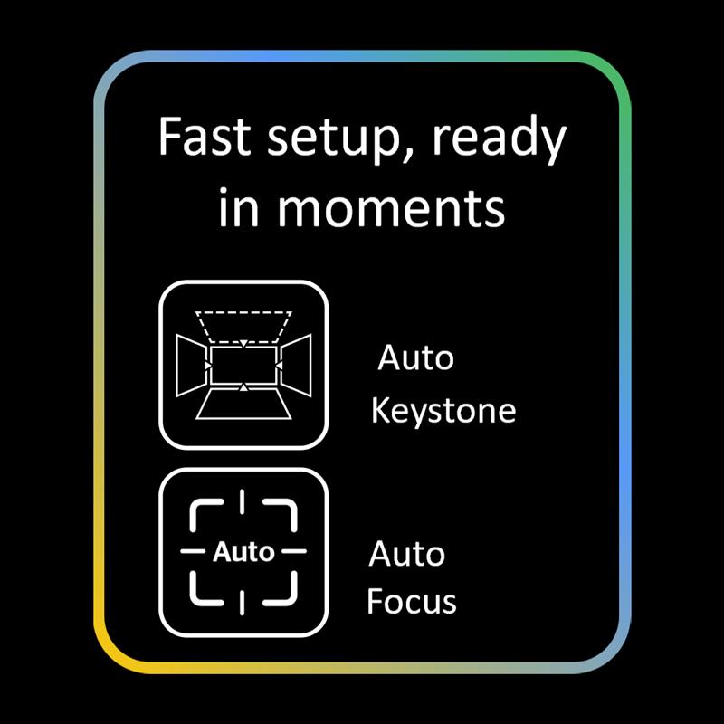 The auto keystone correction feature automatically compensates for trapezoidal distortion when the projector isn’t perfectly aligned with its axis or the projection surface isn’t completely flat—instantly delivering a perfectly aligned image.